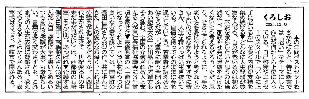 12月6日付けの『宮崎日日新聞』の社説「くろしお」に、