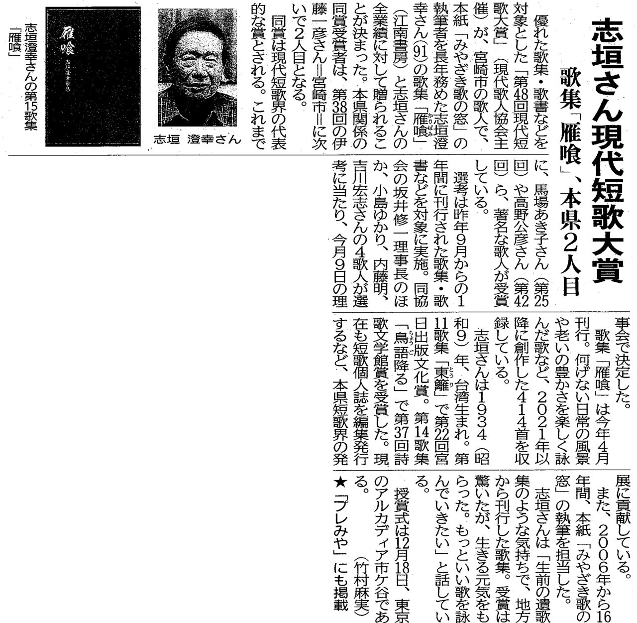 本日付け『宮崎日日新聞』に記事掲載されていましたので、ご紹介いたします。